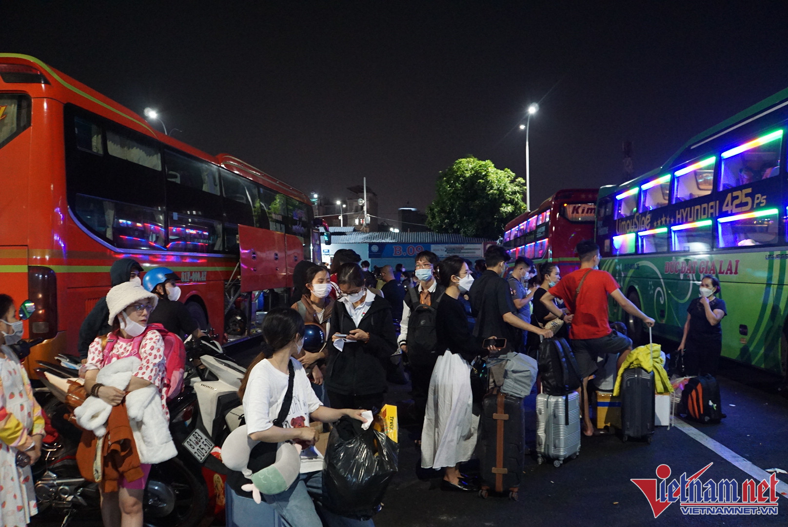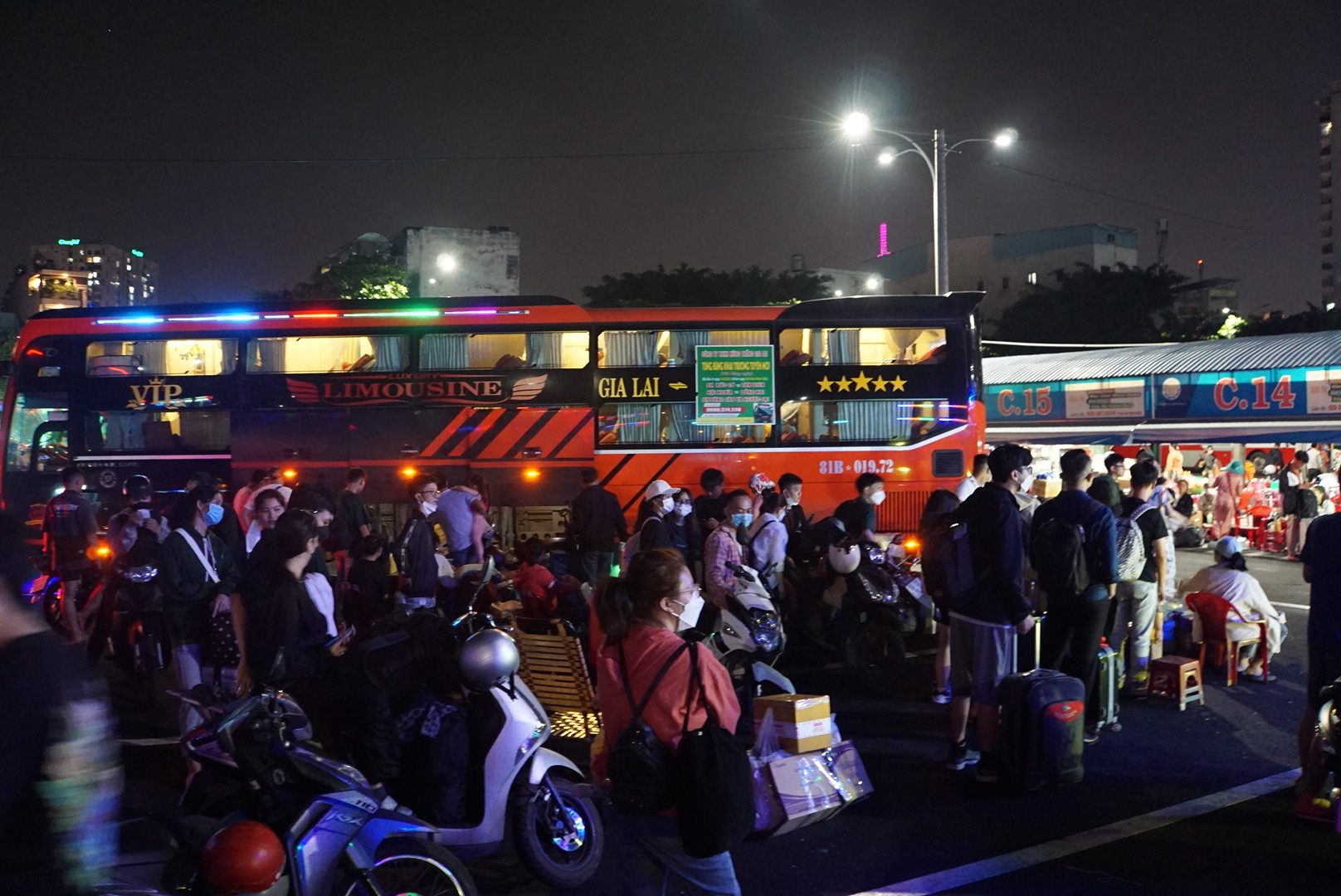 Trong khi đó, tại Bến xe Miền Đông cũ (quận Bình Thạnh), hành khách đi các tỉnh Tây Nguyên như Đắk Lắk, Đắk Nông, Lâm Đồng, Kon Tum, Gia Lai, Bình Phước... dòng người cũng ùn ùn đổ về từ chiều tối.