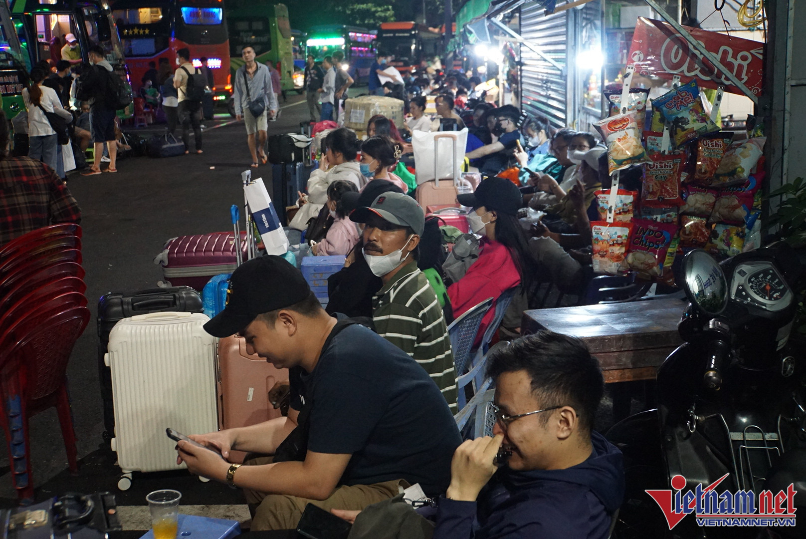Do lượng khách tăng đột biến nên Bến xe Miền Đông mới không đủ ghế cho hành khách, nhiều người phải ngồi dưới sàn nhà. Hành khách đến sớm từ 1 - 2 tiếng để chờ lên xe nên ai cũng mệt mỏi, đặc biệt là trẻ em.