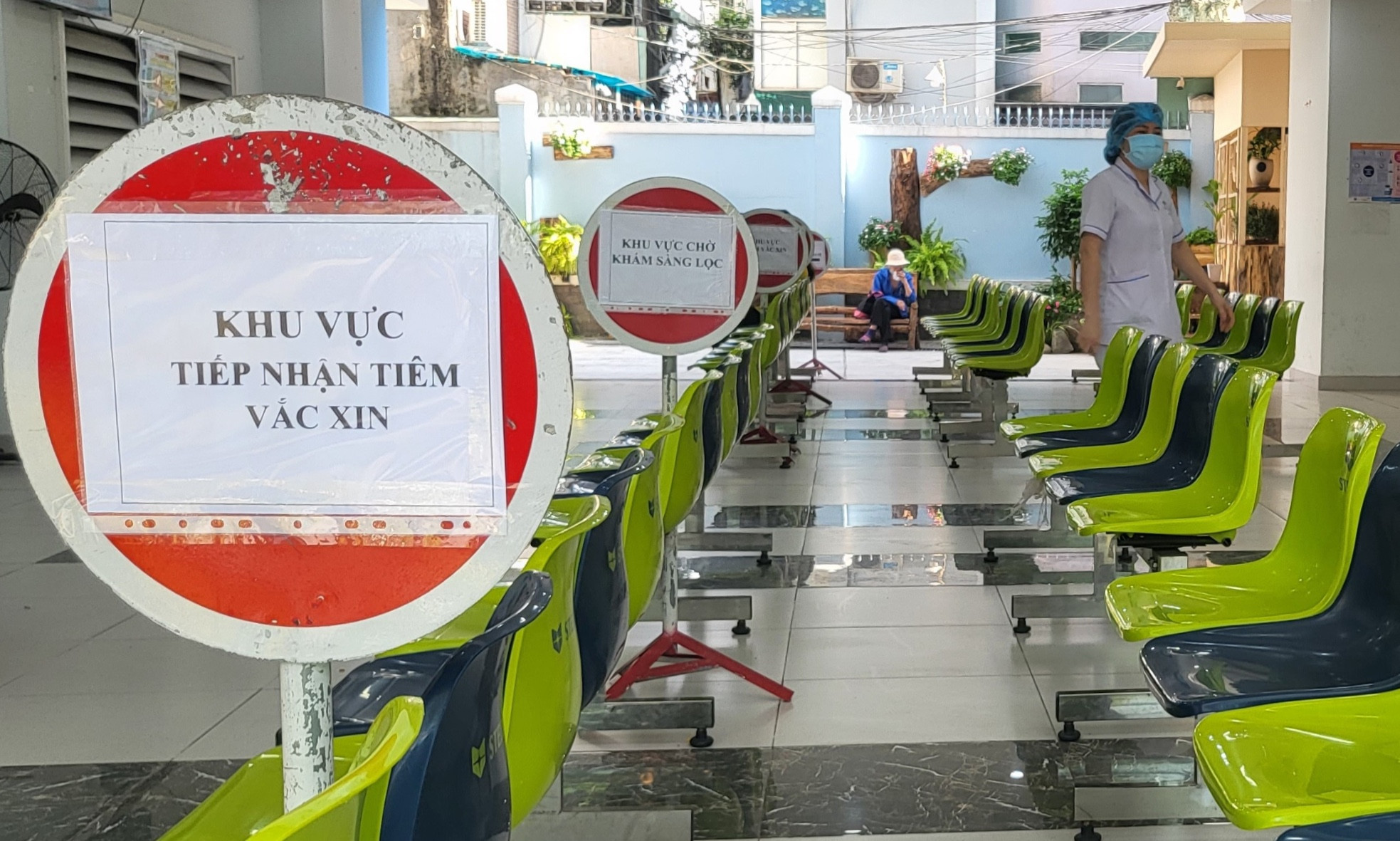Khu vực tiêm vắc xin Covid-19 cho người lớn tuổi tại một cơ sở y tế ở TP.HCM.