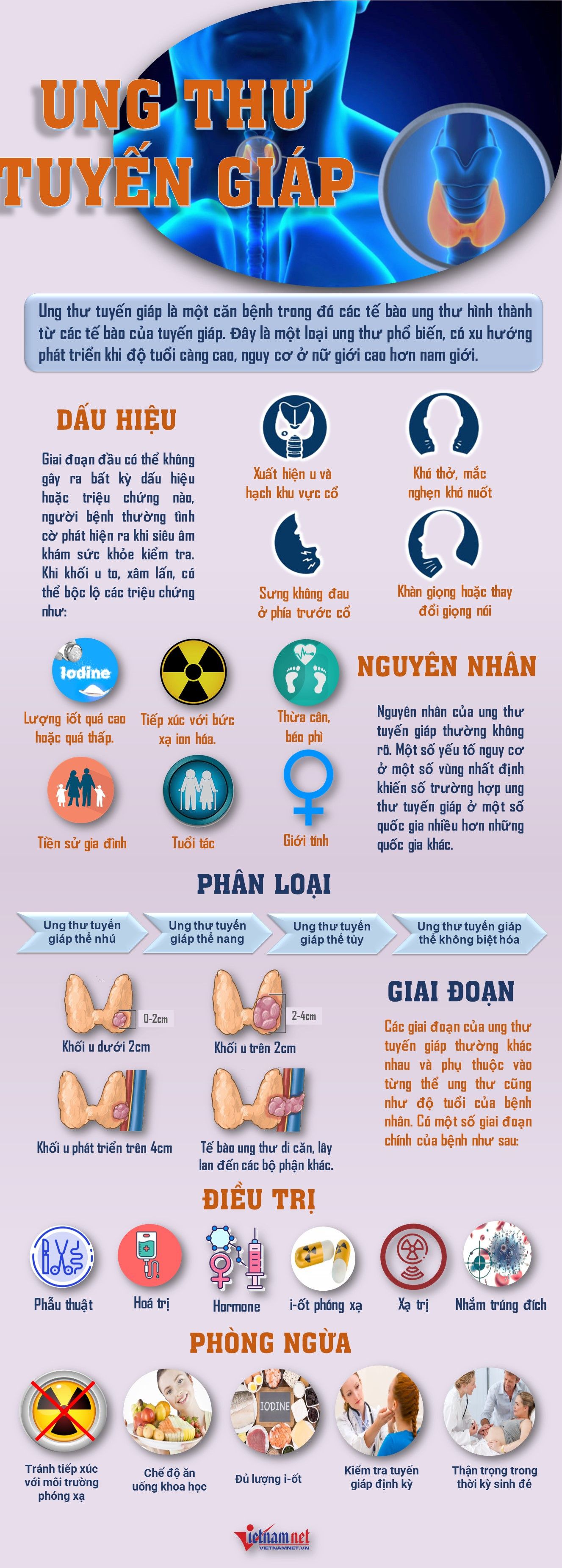 Ung thư tuyến giáp là một căn bệnh trong đó các tế bào ung thư hình thành từ các tế bào của tuyến giáp. Đây là một loại ung thư phổ biến, nguy cơ ở nữ giới cao hơn nam giới.