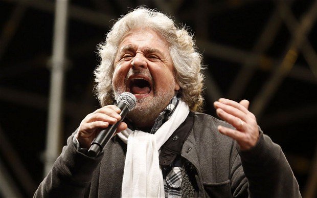 | Beppe Grillo phát biểu tại một cuộc mít-tinh ở Rome. |