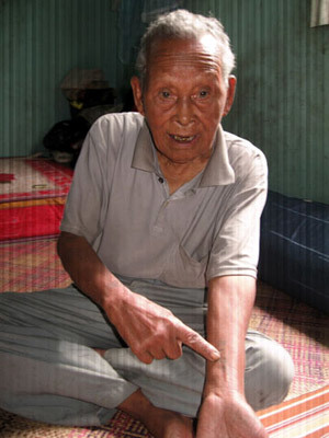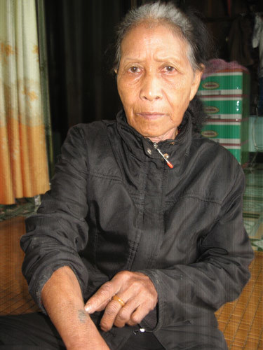 Về tục xăm mình của con trai, cụ Ngoan chỉ cho chúng tôi đến nhà cụ Hồ A Tum (cụm 3, thị trấn A Lưới). Cụ A Tum năm nay đã bước sang tuổi 90, dấu vết về hình xăm trên trán, trên cánh tay, bắp chân cũng đã phai mờ.