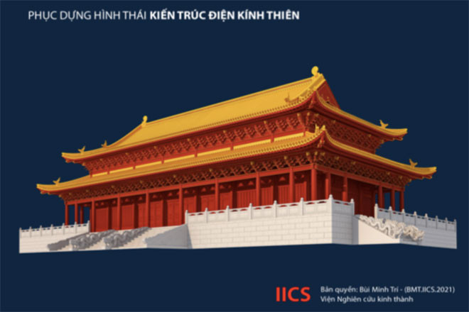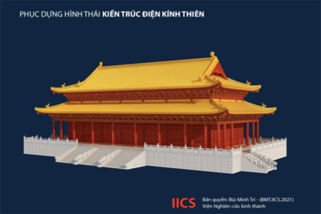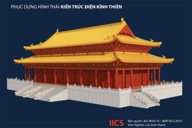 Trên cơ sở nguồn tư liệu khảo cổ học tại Hoàng thành Thăng Long, đặc biệt là kết quả nghiên cứu so sánh với kiến trúc cung điện cổ ở Đông Á, nghiên cứu mặt bằng nền móng, bộ khung giá đỡ mái, hình thái bộ mái, ngói lợp, các nhà khoa học của Viện Nghiên cứu kinh thành đã phục dựng lại bằng hình ảnh và mô hình điện Kính Thiên thời Lê sơ.