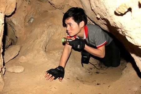 Phải bò mới vào được Hang Cô Tiên.