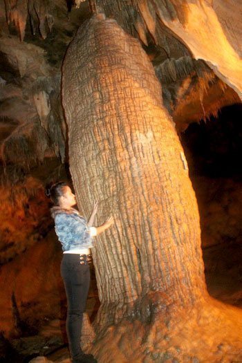 Phía dưới có một cột nhũ đá lớn 5 người ôm không xuể mà theo như người Trùng Khánh đó là cột chống trời. Nhiệm vụ hình phạt của cô tiên là phải canh giữ cột đá này để đảm bảo cho thiên đình không bị kẻ xấu xâm hại đến.
