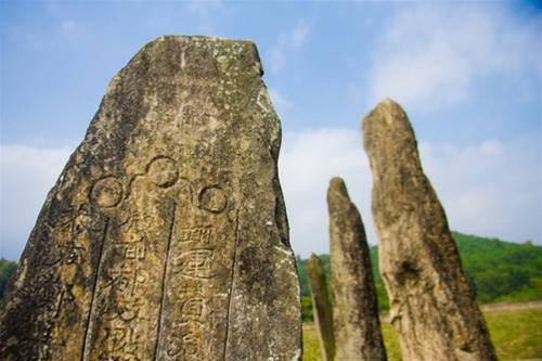 Tất cả các ngôi mộ đều chôn ba khối đá cao phía đầu mộ thành một hàng, khối đá to nhất chôn ở giữa. Chân mộ chôn ba khối nhỏ hơn. Những khối đá cẩm thạch được xác định là mang về từ xứ Thanh, ở vùng này không có loại đá ấy. Phiến đá to nhất có chiều rộng hơn 1m, cao khoảng 4m, có phiến nặng hàng tấn.