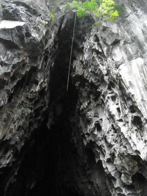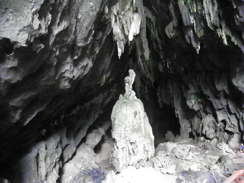 Án ngữ trước cửa hang là khối thạch nhũ khổng
