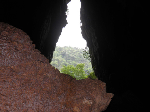 Hang Tối có cửa khuất sau cây cổ thụ, cạnh một nương