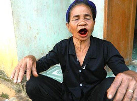| Bà Đinh Thị Thương, người đang bị dân làng nghi kỵ cầm đồ thuốc độc |