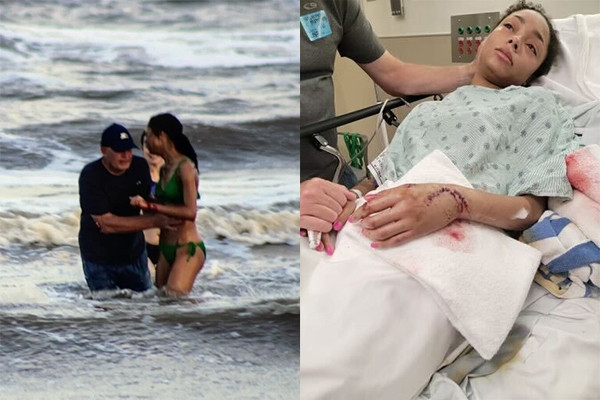 Tại đây, cô bất ngờ bị một con cá mập lớn tấn công và cắn đứt một chân.