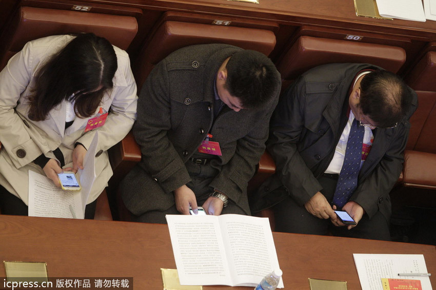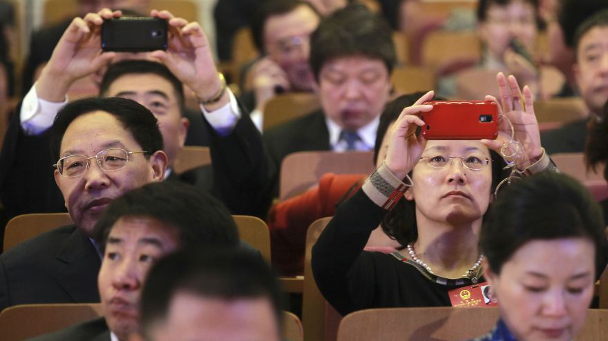 Các đại biểu sử dụng điện thoại tại Hội nghị nhân dân Thâm Quyến năm 2013. Ảnh: People's Daily