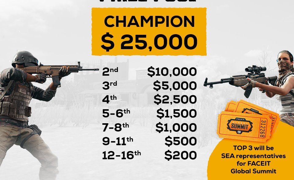 Thậm chí, 3 đội có thành tích cao nhất sẽ giành quyền tham dự FACEIT Global Summit: PUBG Classic tổ chức tại London, Anh từ ngày 16/4/2019 với tổng giải thưởng 400.000 USD.