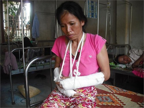 Có mặt tại bệnh viện huyện Yên Thành, chúng tôi thấy thật xót xa khi nhìn chị Thảo nằm bất động, đờ đẫn trên giường bệnh. Mấy ngày nay chị không ăn được cơm, cháo, chỉ uống tí nước vì đau đớn, miệng sưng húp lên. Nhìn chị, những người đến thăm không khỏi đau lòng, rơi nước mắt. Thân hình vốn gầy gò nay càng teo tóp, phờ phạc.