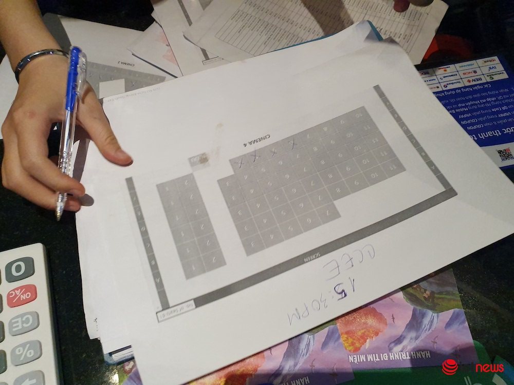 Khách xem phim chọn chỗ ngồi trên bản đồ giấy khi hệ thống CGV bị lỗi hôm 14/12/2019. |