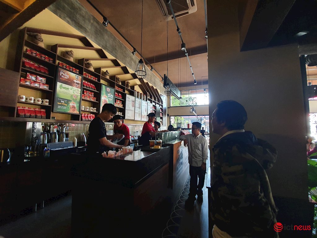 Không có điện, hệ thống điều khiển thiết bị rung không hoạt động, hệ thống máy tính cũng không chạy. Khách vốn quen với việc gọi món xong đến bàn ngồi chờ thì nay phải đứng xếp hàng ở quầy. Nhân viên sau khi làm xong món liền cầm hoá đơn gọi từng khách đến lấy thức uống.