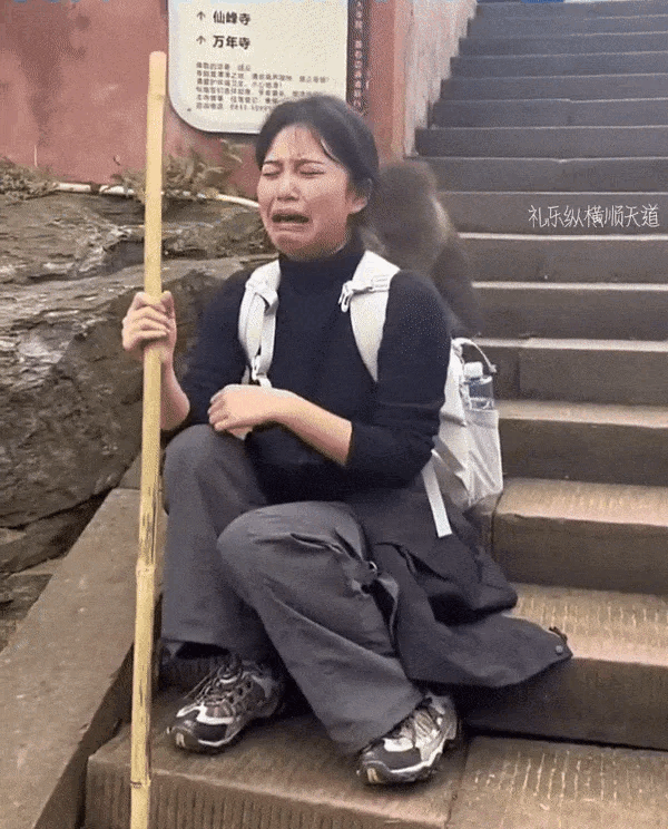 Sự việc xảy ra hôm 14/10 khi nữ du khách và bạn bè cùng nhau leo núi. Hình ảnh cho thấy nữ du khách ngồi trên bậc thang và khóc nấc.