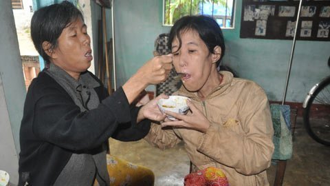 | Lúc tỉnh chị Vương Thị Ngọc chăm sóc đứa em tâm thần Vương Thị Thu. |