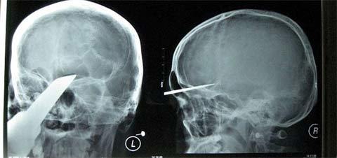 "Thật may mắn, thanh kiếm không chạm vào các động mạch trong hộp sọ và các dây