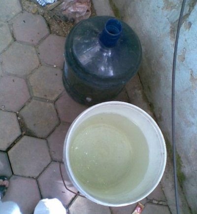 Cách chỗ tôi ngồi chừng 5m là 1 bình nước lọc 20l đã mất nhãn mác và không có nút bịt. Bên ngoài bình bám đầy bụi, đen nhẻm và cũng không có nước bên trong. Ngay sát bình nước này là 1 xô nước lã, trên mặt đầy váng bụi và cũng không có nắp đậy.