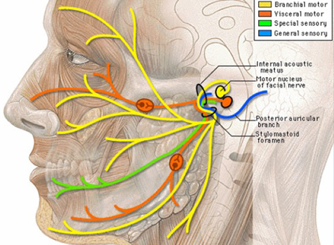 Theo đó, liệt dây thần kinh số 7 ngoại biên là tình trạng một bên cơ mặt yếu hoặc chảy xệ xuống dưới, do dây thần kinh điều khiển cơ mặt bị tổn thương. Hệ thống đường đi của dây thần kinh này khá phức tạp, từ thần kinh trung ương đi xuống thái dương và tuyến mang tai chi phối cơ bám da mặt và cơ bám da cổ.