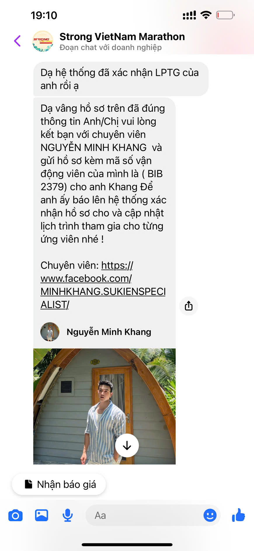 Trong quá trình phóng viên liên hệ trang Strong VietNam Marathon để mua vé, chỉ ít phút sau không nhận được tiền, fanpage này và cả facebook cá nhân của Nguyễn Minh Khang đã bị ẩn.