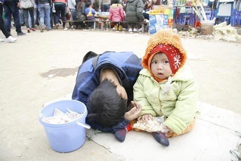 Chiều 22/1 trên phố Trần Duy Hưng – đoạn gần Big C Thăng Long, Hà Nội, nhiều người đi đường chứng kiến cảnh một gia đình trẻ lăn lê giữa ngã tư đèn xanh đèn đỏ cầu xin giúp đỡ. Người vợ run rẩy, trùm khăn gần như kín mặt, người chồng khoảng 30 tuổi, râu ria rậm rạp, gương mặt khắc khổ, bế đứa trẻ trên tay. Với bất cứ ai dừng lại để hỏi thăm, anh chồng đều cất giọng thống thiết kể khổ: Con bị ốm nặng đưa lên Hà Nội chữa trị, chưa khỏi thì mẹ cũng đổ bệnh. Cả nhà khánh kiệt, không có tiền về quê…