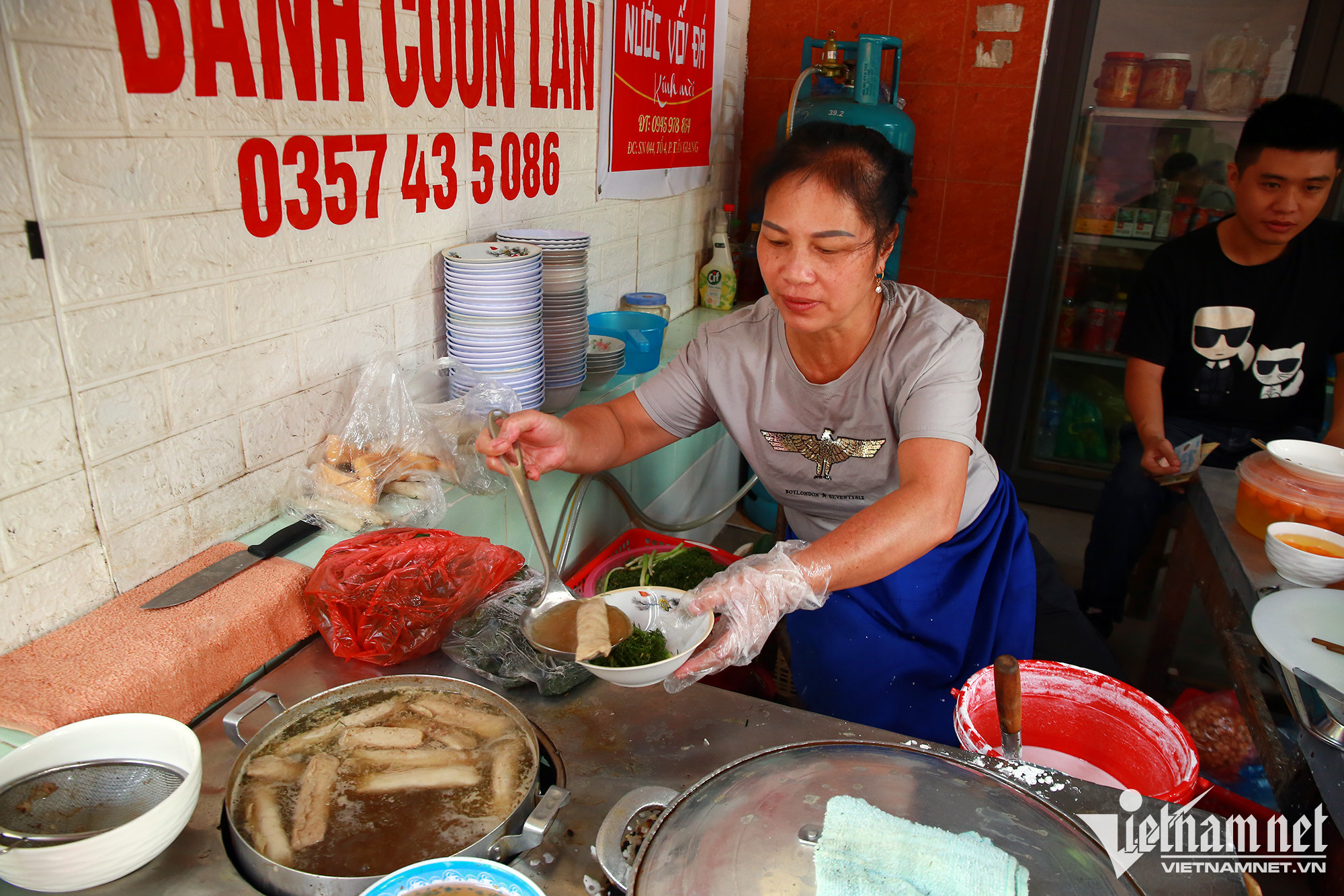 Bà Lan đã bán món bánh cuốn Cao Bằng suốt 40 năm qua. Chỉ sau ít giờ mở bán, quán hết veo cả trăm suất. "Tiếng lành đồn xa", quán bà Lan hiện nay không chỉ thu hút người dân địa phương mà còn thu hút du khách.