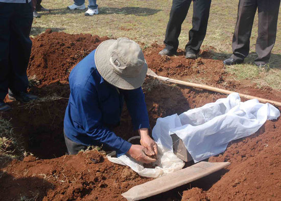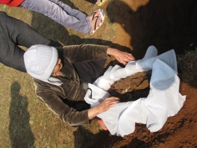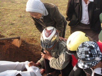 | Cho hài cốt người xấu số vào quách (ảnh:tamnhin) |