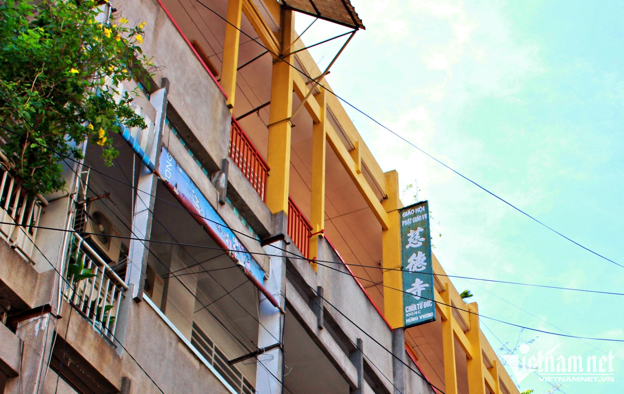 Tọa lạc tại số 100 đường Hùng Vương (Quận 5, TP.HCM), chung cư Hùng Vương nổi bật bởi tầng trên cùng được sơn màu vàng bắt mắt. Đó là màu sơn tường của chùa Từ Đức, ngôi chùa nằm trọn trên tầng 4 của khu chung cư.