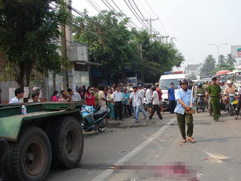 Hậu quả người phụ nữ bị xe tải cán ngang người, chết tại chỗ. Riêng thanh niên gây tai nạn sau khi chứng kiến cảnh tượng hãi hùng đó đã lên xe phóng đi mất dạng và người dân đã kịp ghi số xe cung cấp cho công an.
