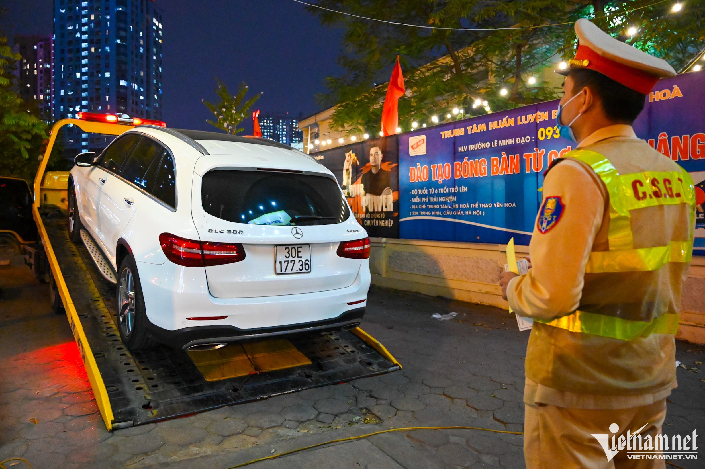 Phương tiện vi phạm của anh N được tổ công tác dán giấy niêm phong trên nắp capo, cánh cửa, cốp và thuê xe cẩu về bãi.