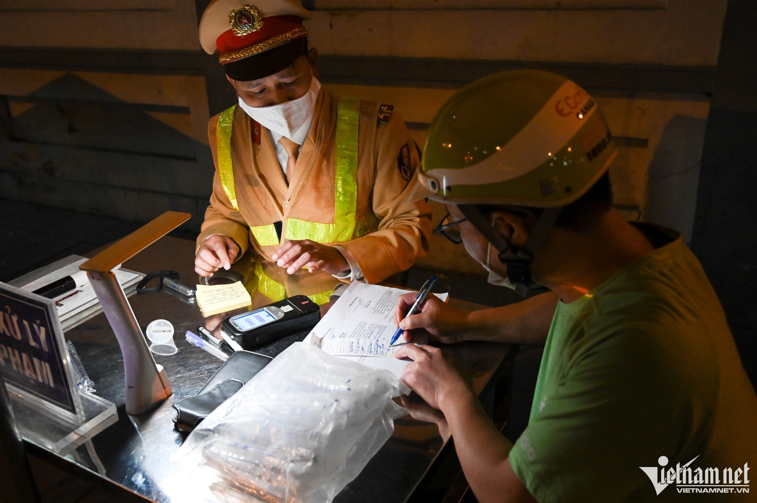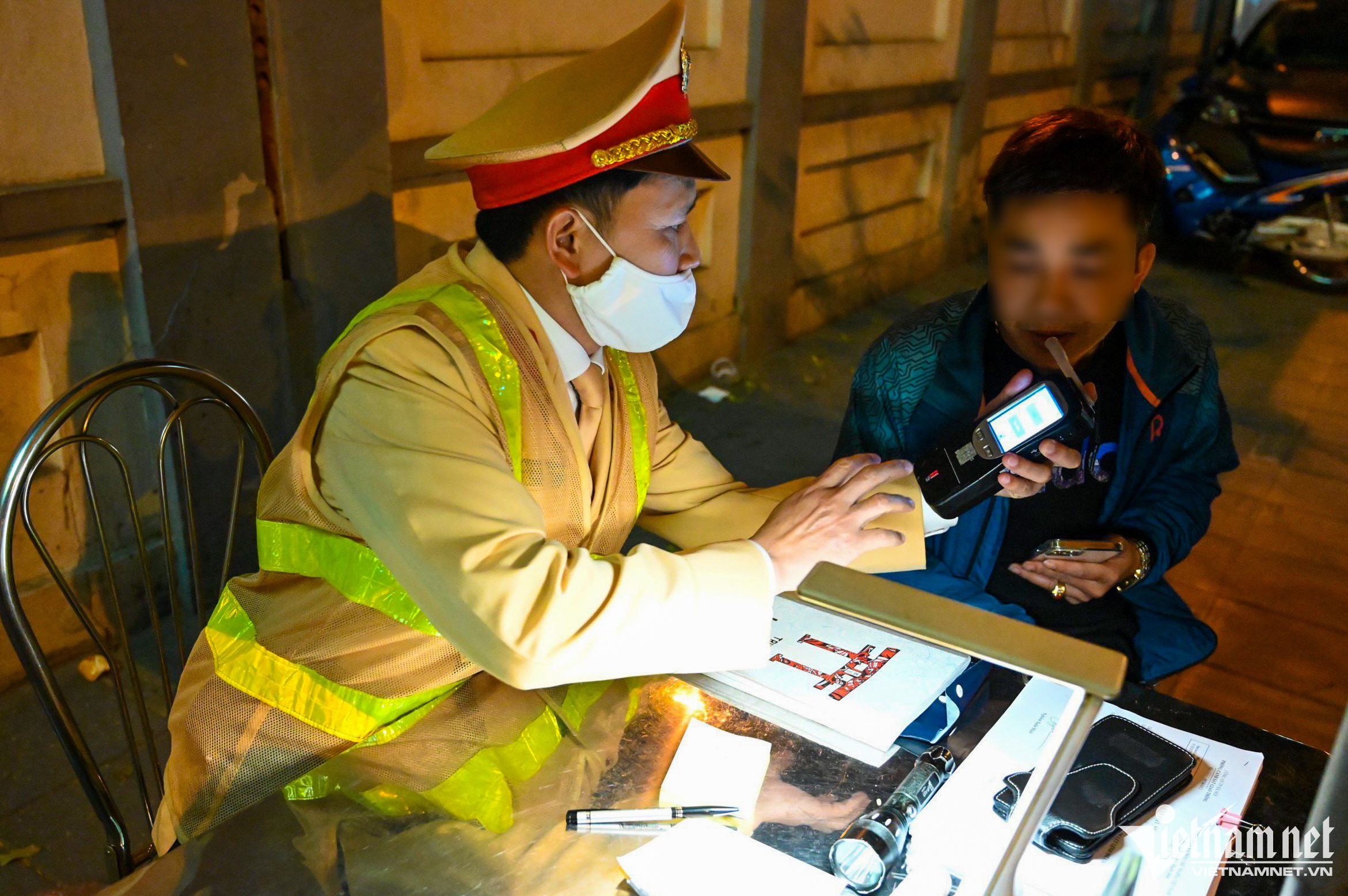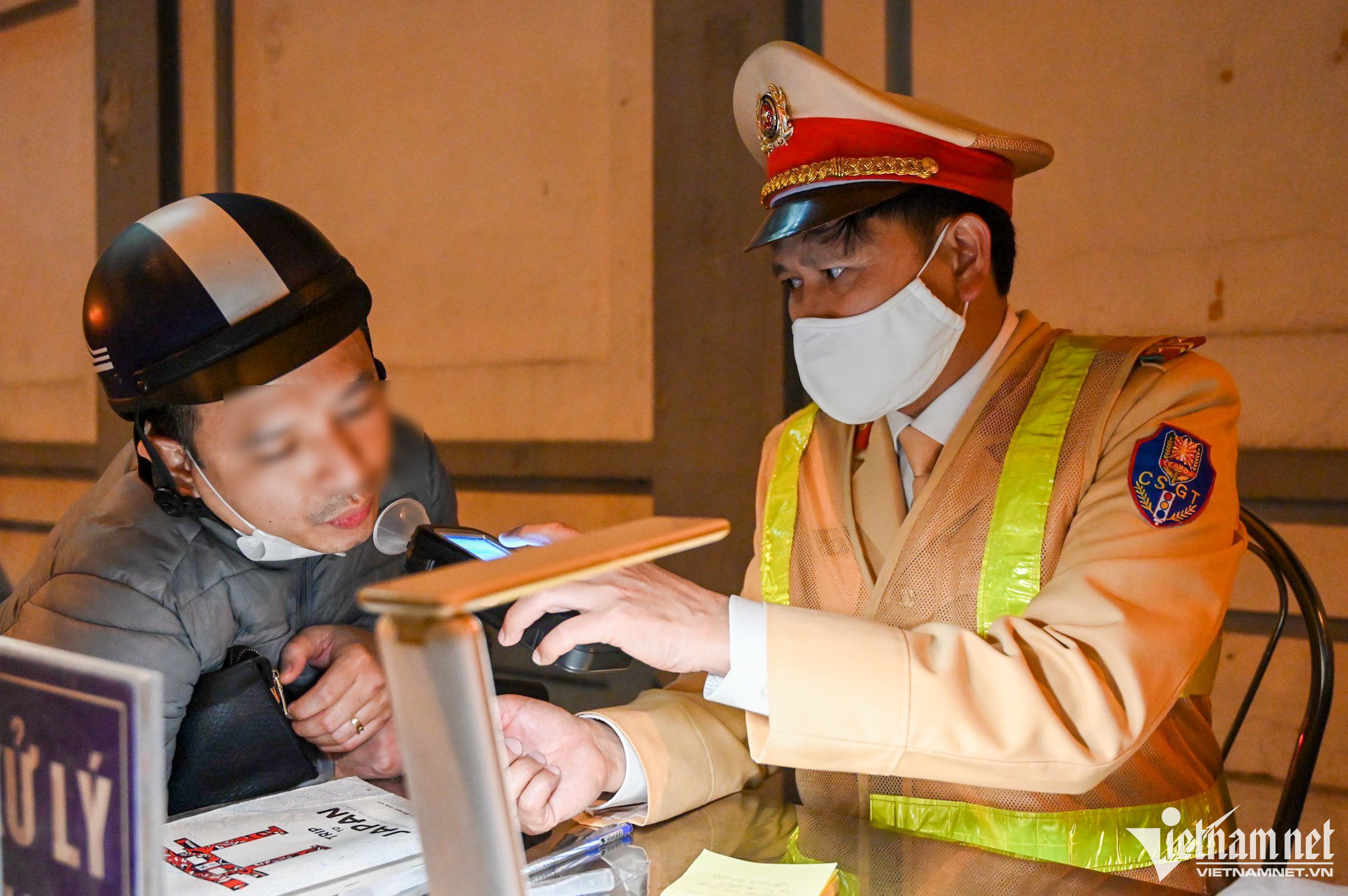 20h50, phát hiện nghi vấn từ xa, tổ công tác đã yêu cầu anh T.V.N (48 tuổi, ở quận Cầu Giấy) dừng xe máy để test nhanh nồng độ cồn.