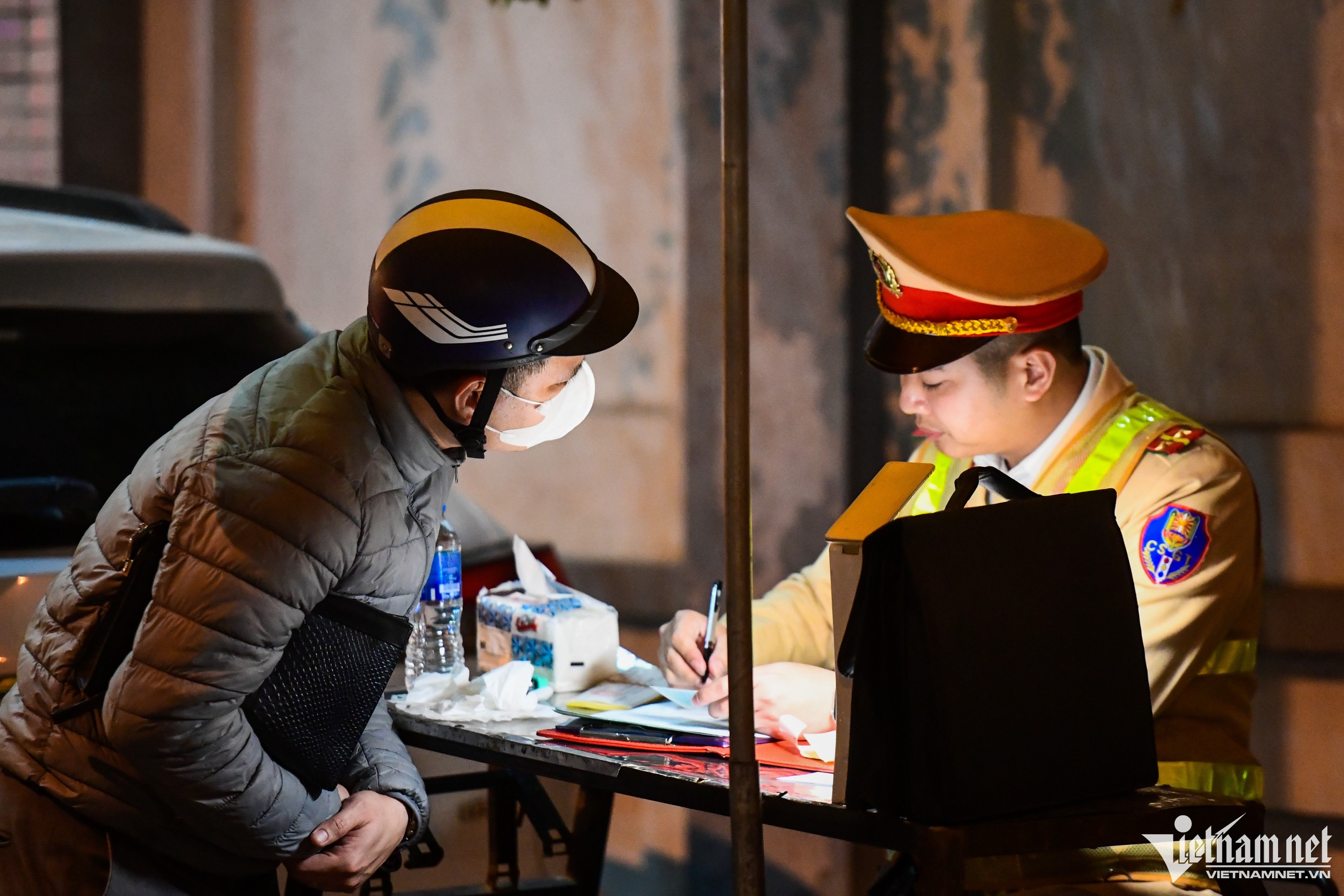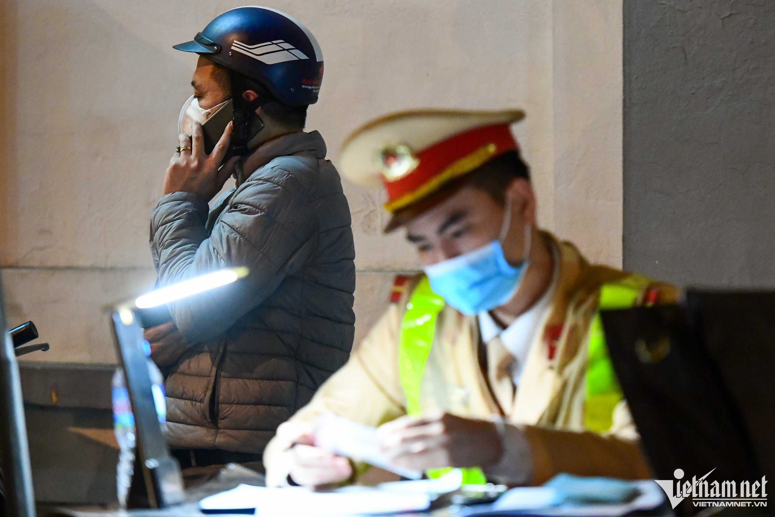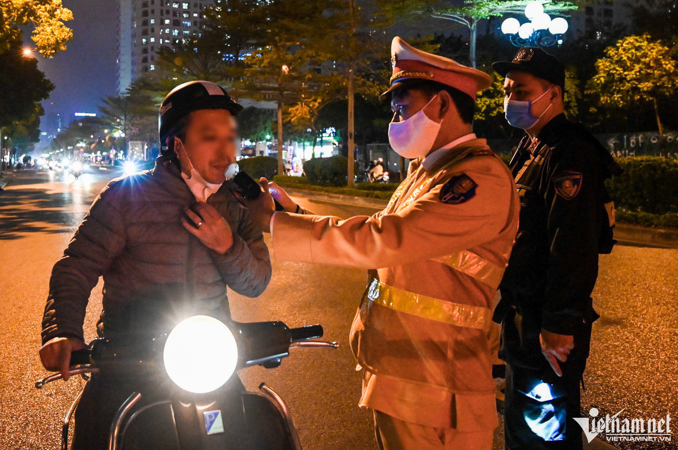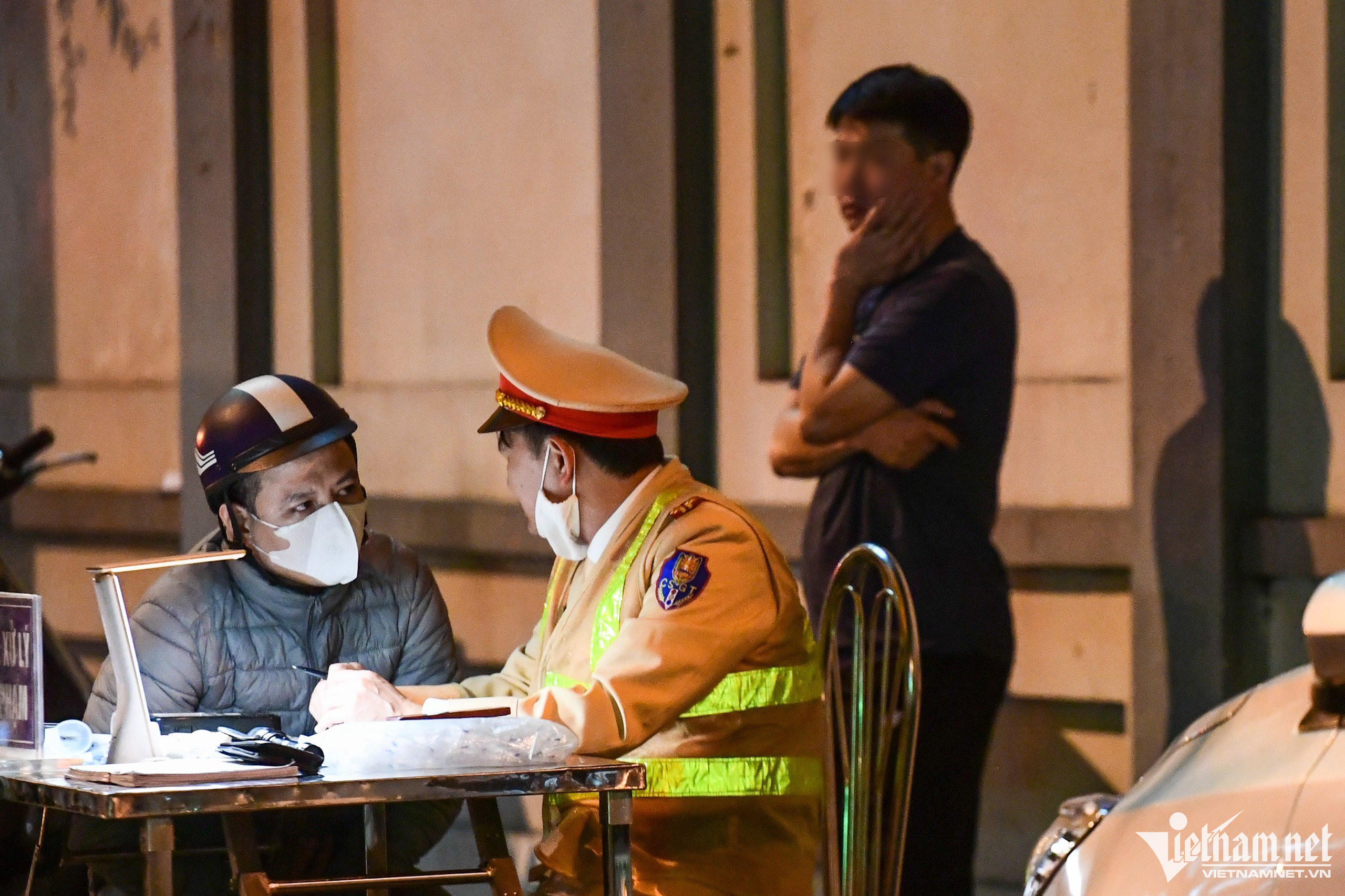 20h50, phát hiện nghi vấn từ xa, tổ công tác đã yêu cầu anh T.V.N (48 tuổi, ở quận Cầu Giấy) dừng xe máy để test nhanh nồng độ cồn.
