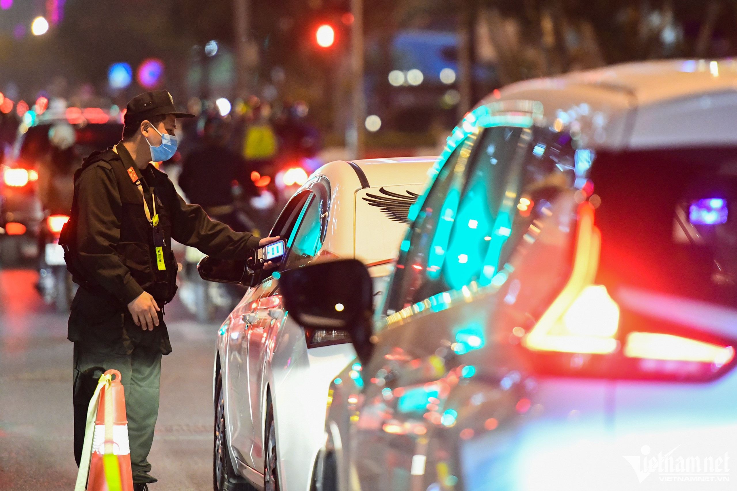 Tối 23/2, Tổ công tác Y11/141 dựng chốt tại nút giao Trung Kính - Dương Đình Nghệ (quận Cầu Giấy). Tại đây, một phần đường được lực lượng chức năng ngăn lại để kiểm soát các vi phạm về nồng độ cồn.
