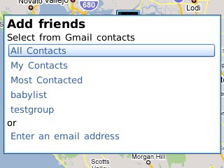 Chạy ứng dụng Google Maps và chọn tính năng Latitude trên thanh giao diện của phần mềm này, sau đó ấn vào mục Add Friends. Tại chỉ mục này, hãy nhấn vào tùy chọn Enter an email address và nhập địa chỉ Google account vừa khởi tạo tại Bước 1 lên các máy di động.