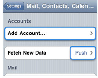 Từ máy iPhone 4 hoặc các thiết bị iOS, truy cập vào Settings\Mail, Contacts, Calendars và chọn chỉ mục Add Acount trong phần Account. Trong phần Fetch New Data chọn Push.