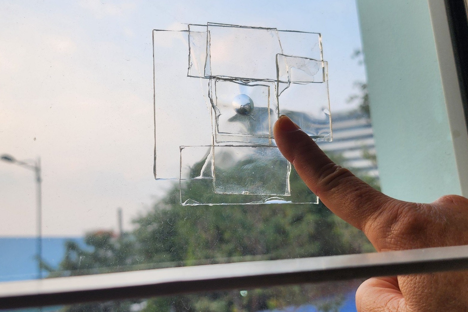Bà Nguyễn Thị Thanh Thủy (đường Lam Sơn, thuộc khu phố 7, phường 2) cho biết tình trạng bi sắt làm hư đồ đạc (kính cường lực, bạt che nắng) xảy ra nhiều ngày qua. Hiện tại bà Thủy phải lấy băng keo dán xung quanh để ngăn kính nứt thêm.