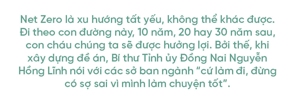 Với tỉnh Đồng Nai, chúng tôi cũng xác định nội thân phải làm, phải chuẩn bị tâm thế. Khi Chính phủ đưa ra hành lang pháp lý cho từng lĩnh vực, quy định rõ ràng về tín chỉ carbon, cách tính lượng phát thải… tỉnh có thể bắt tay vào triển khai ngay.