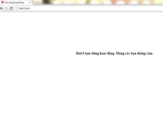Thời điểm hiện tại, khi truy nhập vào địa chỉ: www.haivl.com, người dùng sẽ nhận được thông báo “Haivl tạm dừng hoạt động. Mong các bạn thông cảm”.