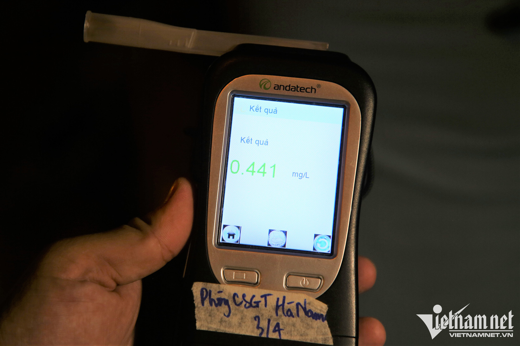 Cũng trong tối cùng ngày, tổ công tác phát hiện tài xế Tạ Đình Đ. điều khiển ô tô mang BKS 90A- 096.XX vi phạm nồng độ cồn. Điều đáng nói, theo kết quả máy đo nồng độ cồn đo được là 0,467 mg/L khí thở, cao hơn mức tối đa quy định trong NĐ100/NĐ- CP.