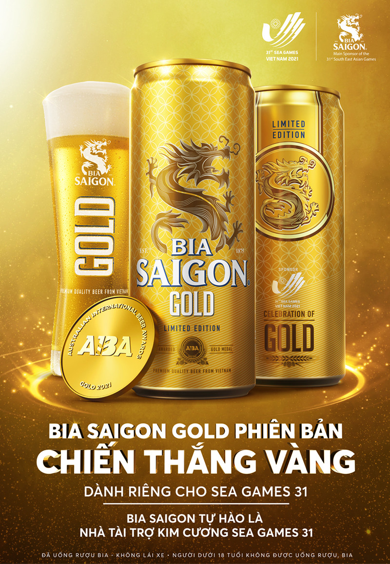 Đồng hành cùng sự kiện thể thao có ý nghĩa với đất nước, thương hiệu Bia Saigon tự hào trở thành nhà tài trợ Kim cương của SEA Games 31. Mong muốn lan tỏa tinh thần thắng vàng tới các vận động viên nói riêng và toàn thể người Việt Nam nói chung, Bia Saigon cho ra mắt sản phẩm Bia Saigon Gold - sản phẩm bia được đánh giá cao trên thị trường Việt Nam và quốc tế với những giải thưởng lớn.