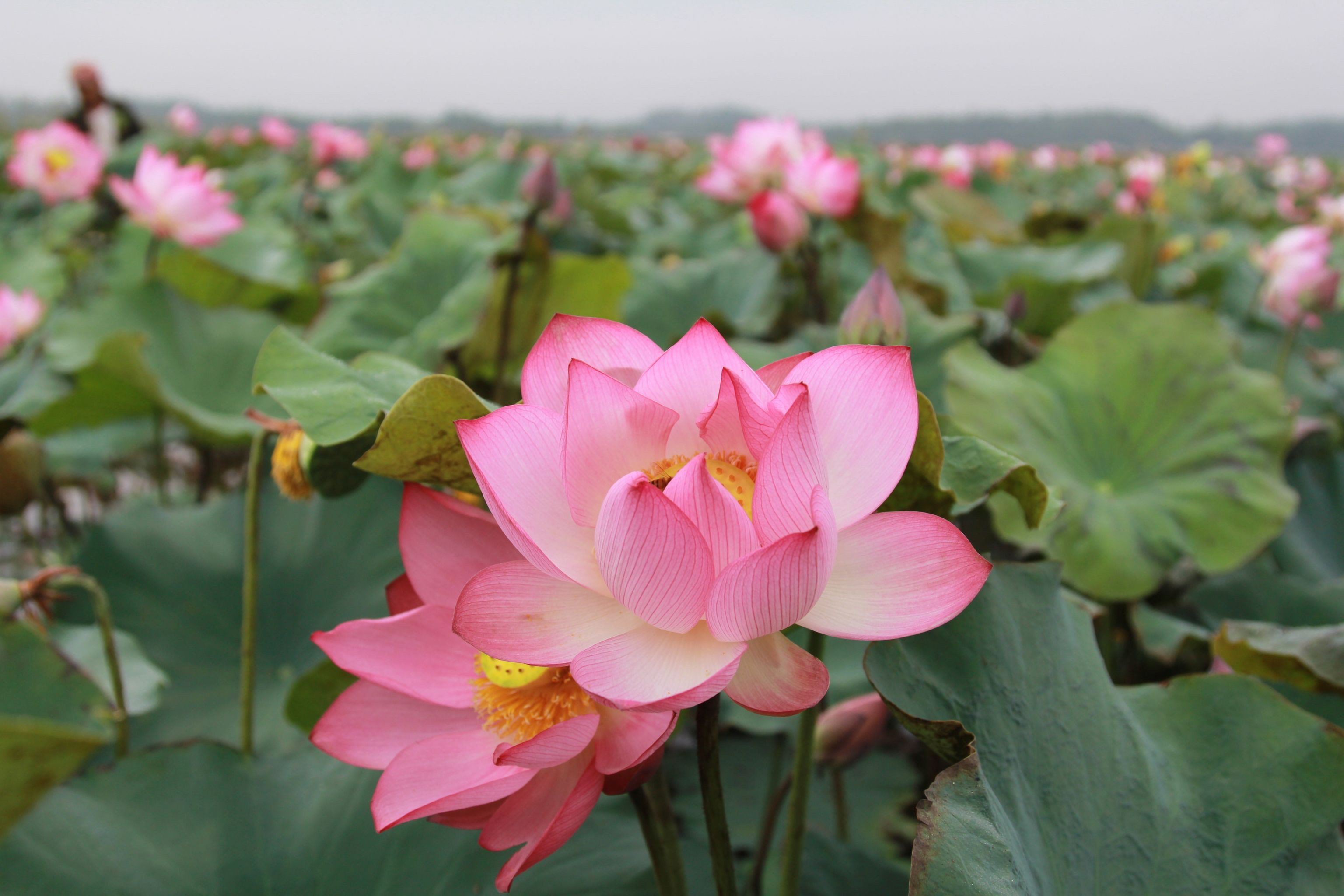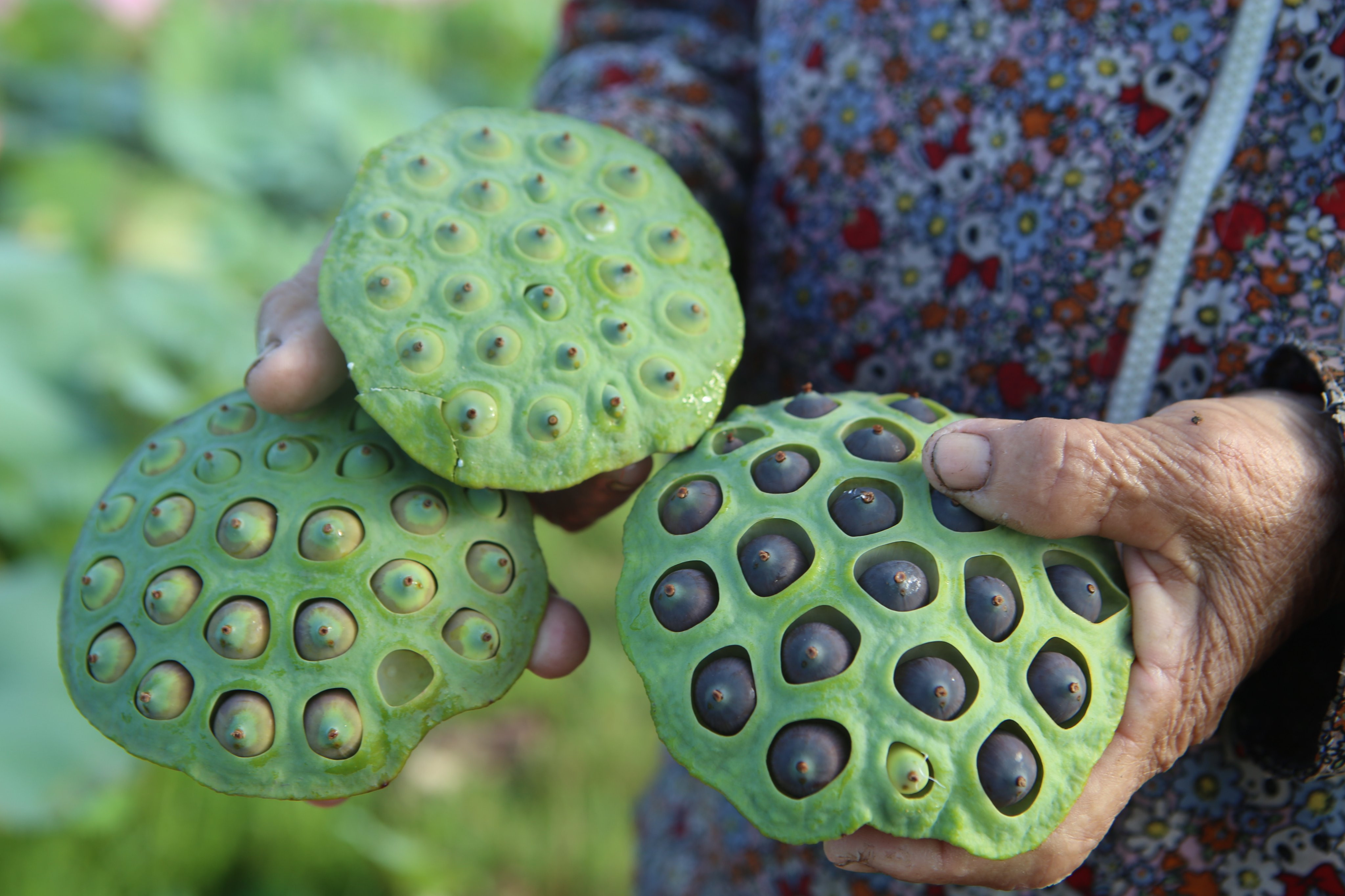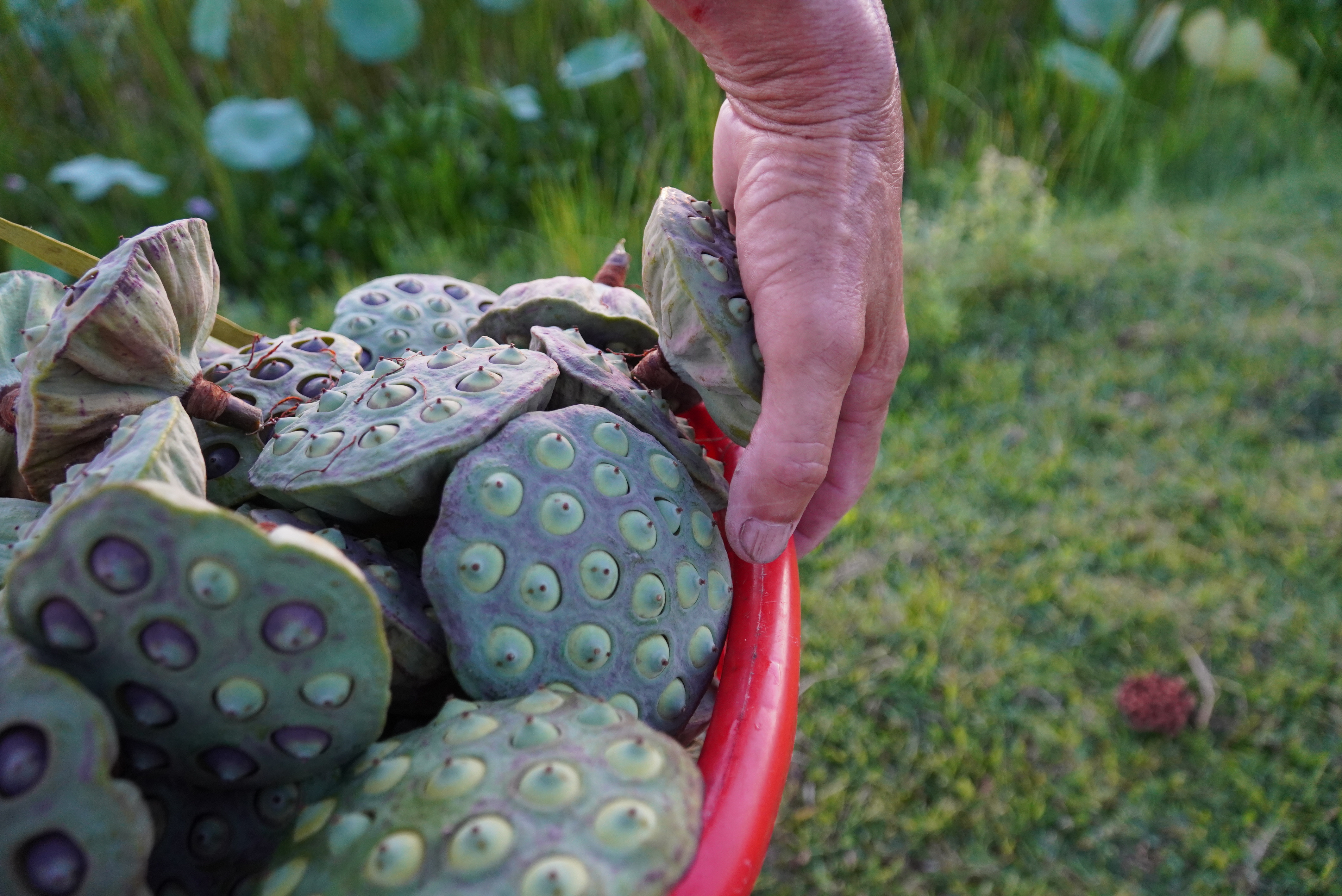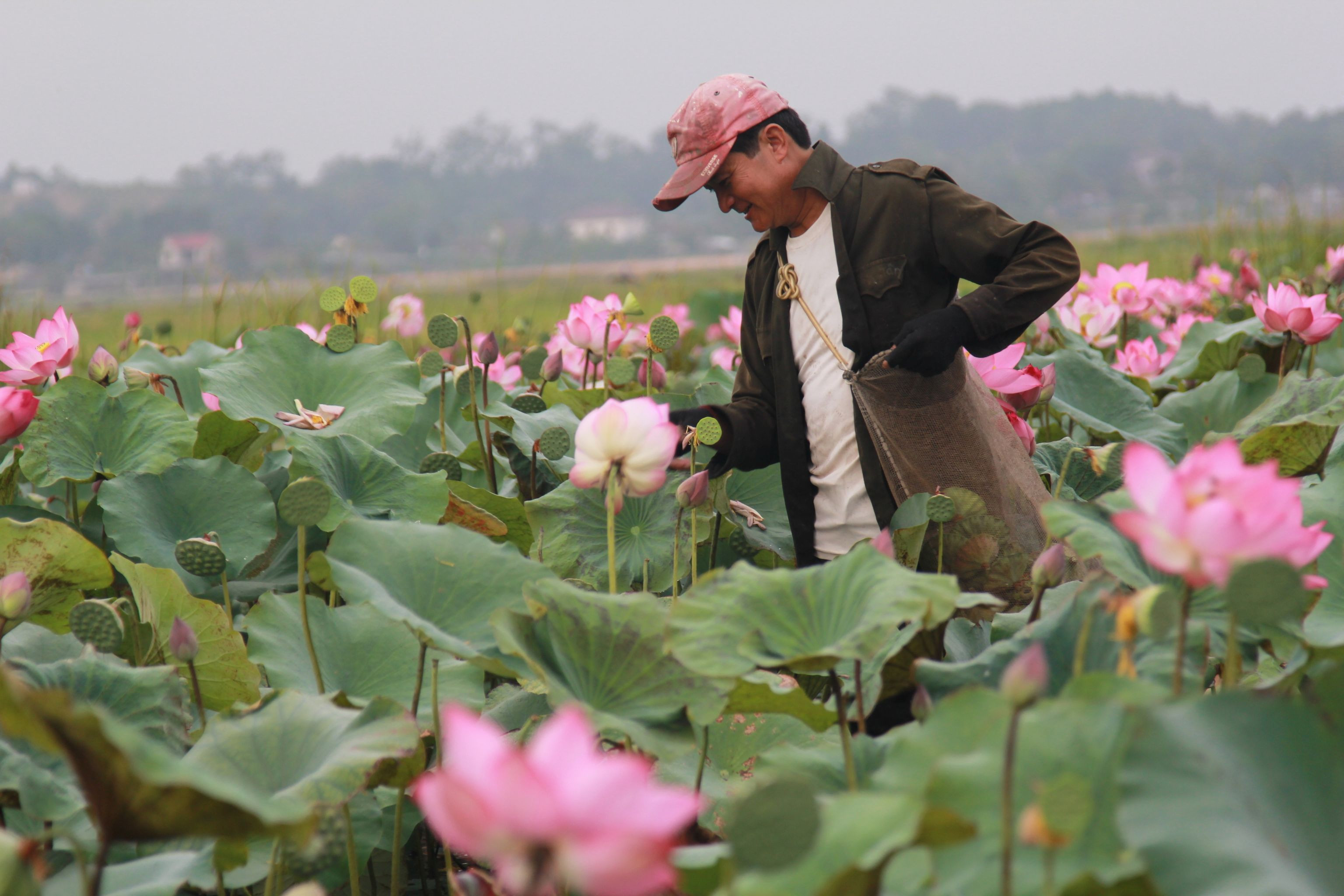Cánh đồng rộng hơn 7 hecta trước đây trồng lúa rồi bị bỏ hoang, nay người dân chuyển sang trồng senTừ sáng sớm, người dân lội xuống bùn thu nhập đài sen. Công việc nặng nhọc nhưng mang lại cho họ nguồn thu từ 10-30 triệu đồng mỗi vụKhu vực này có khoảng 60 hộ dân trồng sen, trên diện tích hơn 7 hec ta. Người dân dùng cộc gỗ cột túi nilong để phân định ranh giới chủ sở hữuĐể tránh nắng nóng, nông dân thường đi vào sáng sớm hoặc chiều tối để thu hoạch đài senTừ tháng 2, sen bắt đầu nở, đến cuối tháng 7 tự tàn. Người dân tranh thủ thu hoạch đài sen từ tháng 5 đến tháng 8Công đoạn thu hoạch sen rất vất vả vì phải ngâm mình, lội hàng tiếng đồng hồ dưới bùnMỗi sào, người dân thu về bình quân 3-4 tạ đài sen tươi. Đầu mùa, họ bán với giá dao động từ 40.000-50.000 đồng/kg hạt tươi, còn hiện nay giá trung bình 35.000 đồng/kg. Ước tính mỗi hộ dân thu về 10-30 triệu đồng mỗi vụ sen.Trong khoảng 3 ngày, người dân sẽ hái đài sen một lần. Mỗi người có thể hái được từ 20-50 kg/buổiNhững bông hoa khoe sắc, thơm ngát trên cánh đồng trước đây từng bỏ hoang vì mất mùaNăm nay sen được mùa, đài sen lớn, hạt to, ăn có vị ngọt bùiNgười dân mang túi xách một bên để tiện di chuyển hái đài sen giữa cánh đồng bùn lầy. Nhờ chuyển đổi trồng sen nên bà con có thu nhập cao.Sau khi thu hoạch đài sen, nông dân đưa về bán lại cho thương lái. Những đài sen già, có màu đen sẽ bán được giá cao hơn những đài sen non.