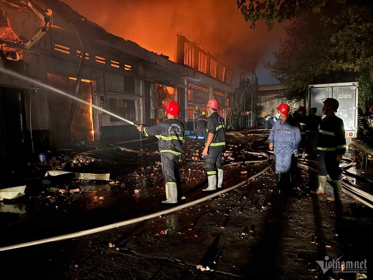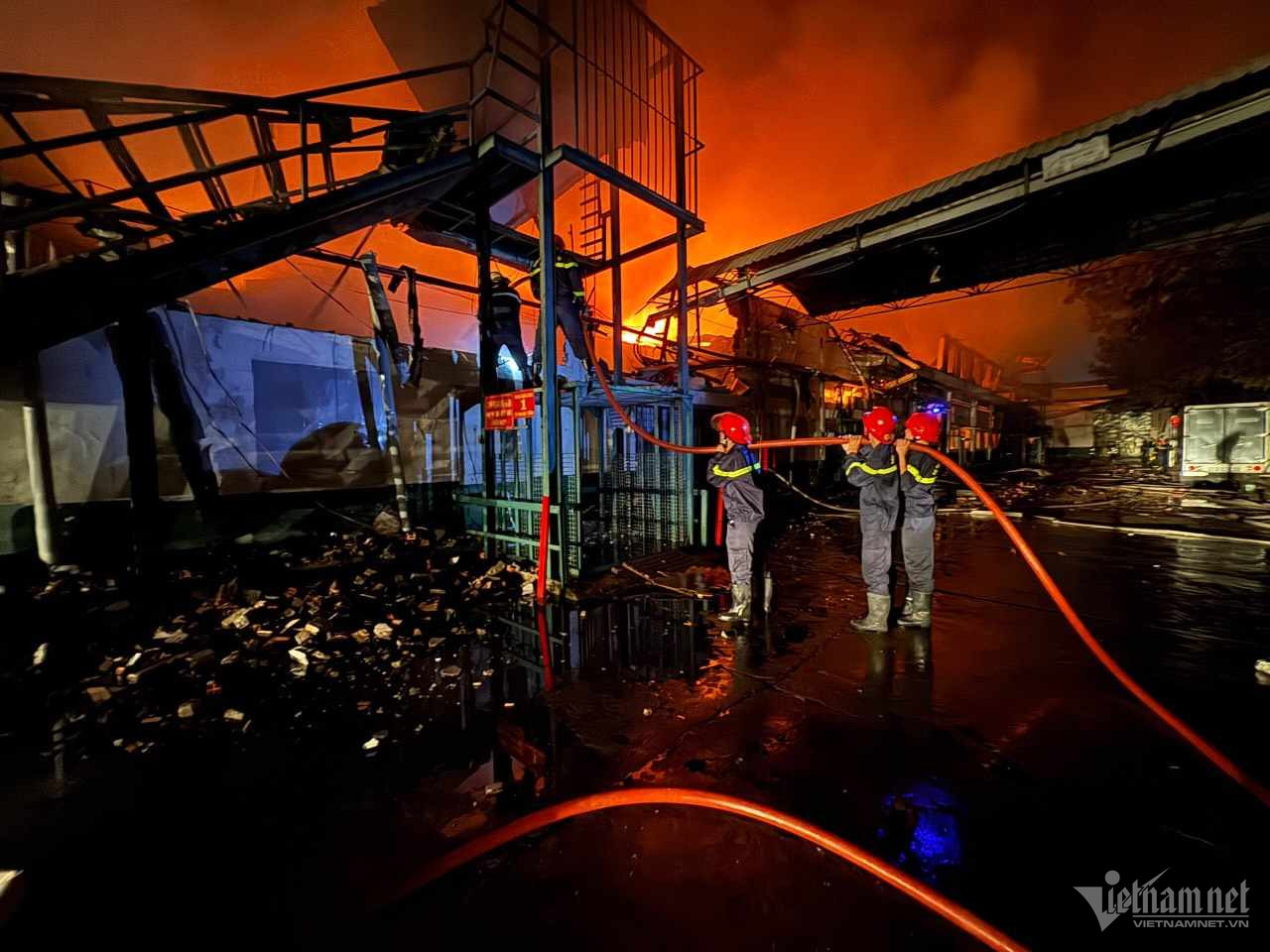 Trước đó, vào khoảng 19h, biển lửa đỏ rực bao trùm nhà xưởng. Người dân cùng nhân viên nhà xưởng dập lửa tại chỗ nhưng bất thành.