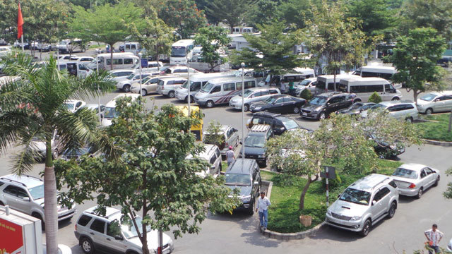 Trong khi đó, khu vực xe ô tô dừng chờ khách tại ga quốc nội cũng đông đặc xe dừng đậu, chờ đón khách Việt kiều về quê ăn Tết |