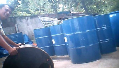 | Một khâu trong quy trình pha chế xăng dỏm ở bãi xăng dầu Trâu Điên |