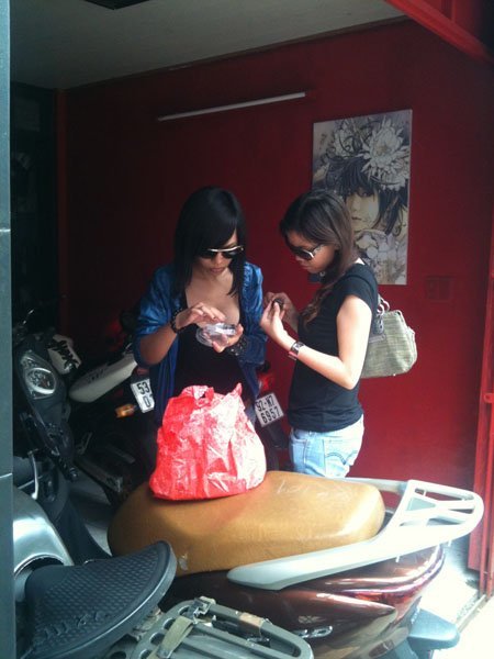 Thúy quảng cáo thêm: “Đây là loại đá xịn nên giá rất đắt, chỉ mua được từ Đức và có nhiều màu. Nếu anh chị thích chơi theo phong thủy, hợp với bổn mạng thì em tư vấn luôn. Anh chị khỏi lo bị nhiễm trùng vì kim loại này được thiết kế đặt biệt, không bị cơ thể đào thải khi đưa vào bên trong”.