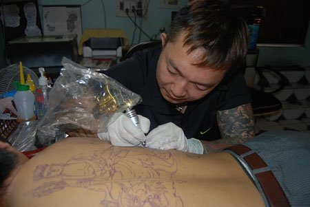 Có mặt tại tiệm xăm mang tên “Mùa Xuân” ở quận 8, một bạn nam đang gồng mình chịu đau để xăm lên lưng một tấm hình thể hiện một nội dung tôn giáo. Đó là bạn Nguyễn Thế Tiệp - 26 tuổi, hiện đang là nhân viên của một công ty nước ngoài hoạt động tại Việt Nam.