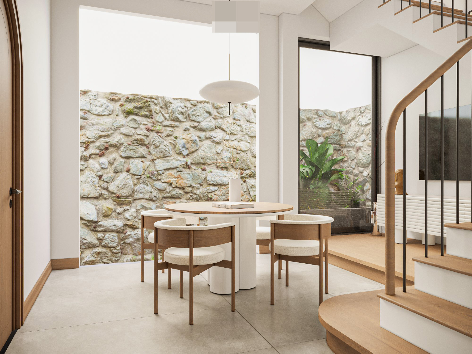 Phong cách nội thất japandi là cảm hứng sáng tạo cho không gian. Phong cách này kết hợp chủ nghĩa tối giản của bắc Âu với đặc tính của một nền văn hóa nội thất Nhật Bản đầy tinh tế. Thiên nhiên len lỏi vào từng ngóc ngách ngôi nhà, xen lẫn trong các khu vực chức năng.