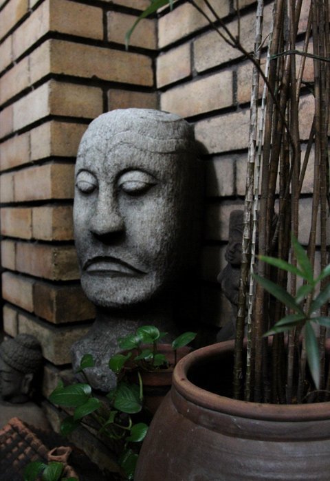 Ngay khi bước qua cánh cổng, vào sân và đi tới phòng khách, người ta dễ dàng cảm nhận tính cách và gu thẩm mỹ của chủ nhân. Không cần nhìn vào những bức tranh treo trên tường hay bước vào khu vực để giá vé thì mới biết đây là nhà của họa sĩ Đào Hải Phong, bởi tất cả đều toát lên từ mỗi món đồ anh bày biện trong nhà, từ những món đồ gốm đến những bức tượng.