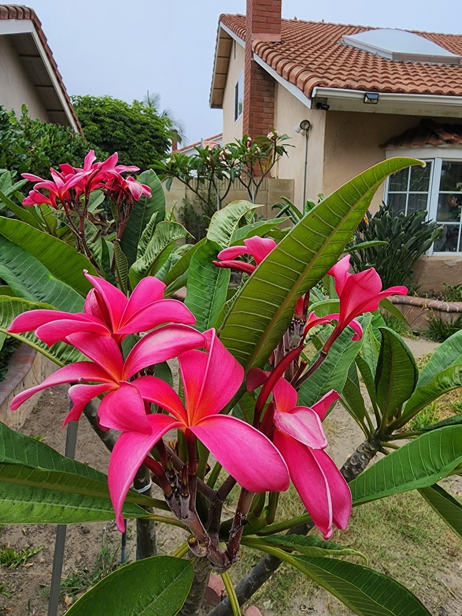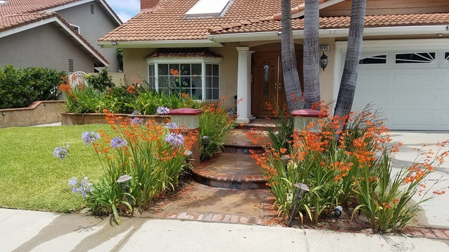 Sân vườn trồng nhiều hoa, cây cảnh và cả cây ăn quả.